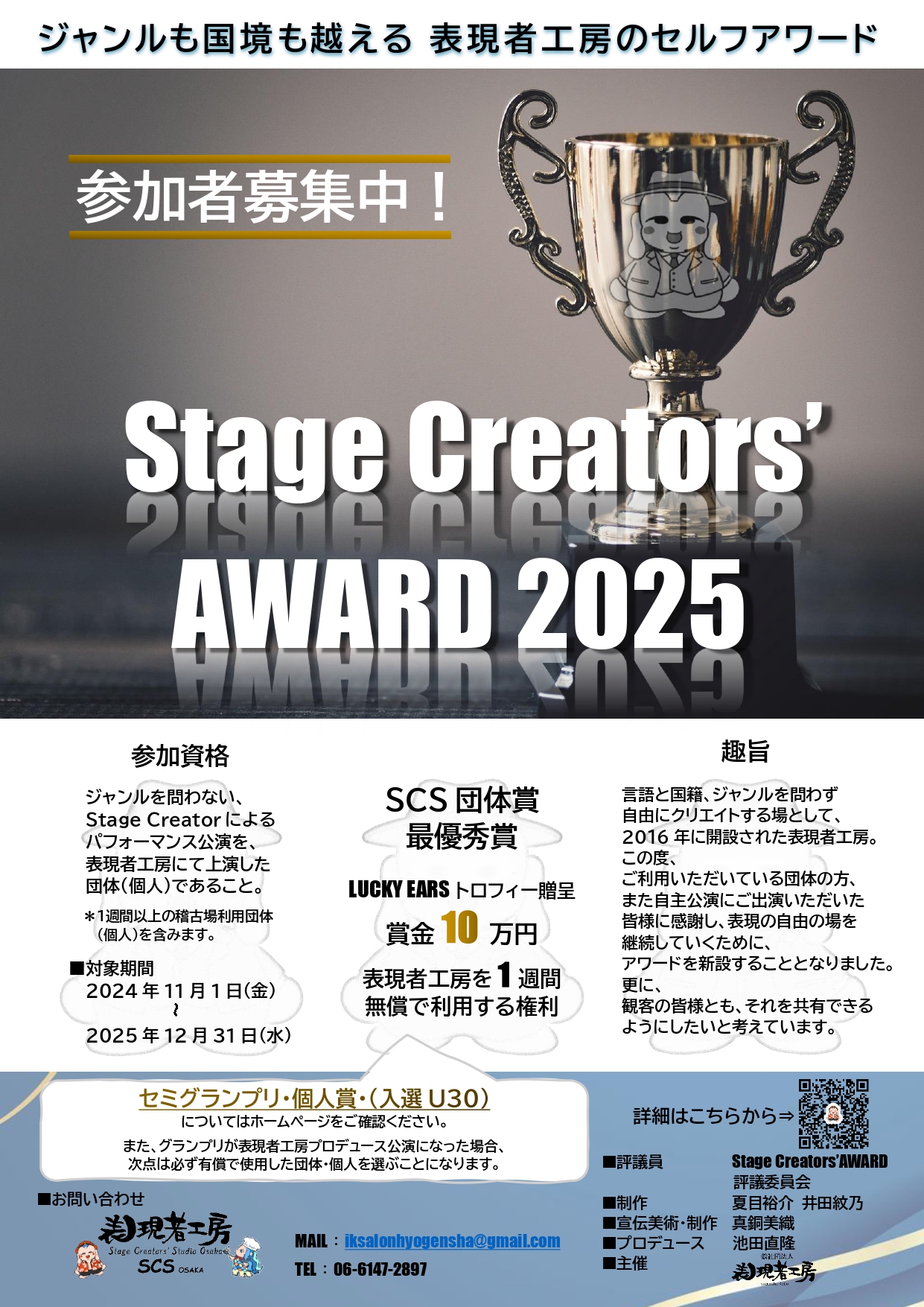 表現の自由を考える Stage Creators をサポートし 新しい表現の継続を目指して 表現者工房は Stage Creators’ AWARD を開催します